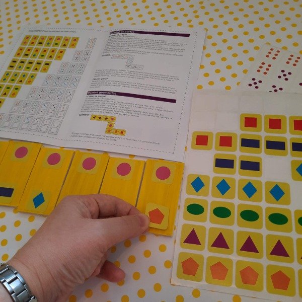 Vos creas el juego pintando las fichas y pegando los stickers.